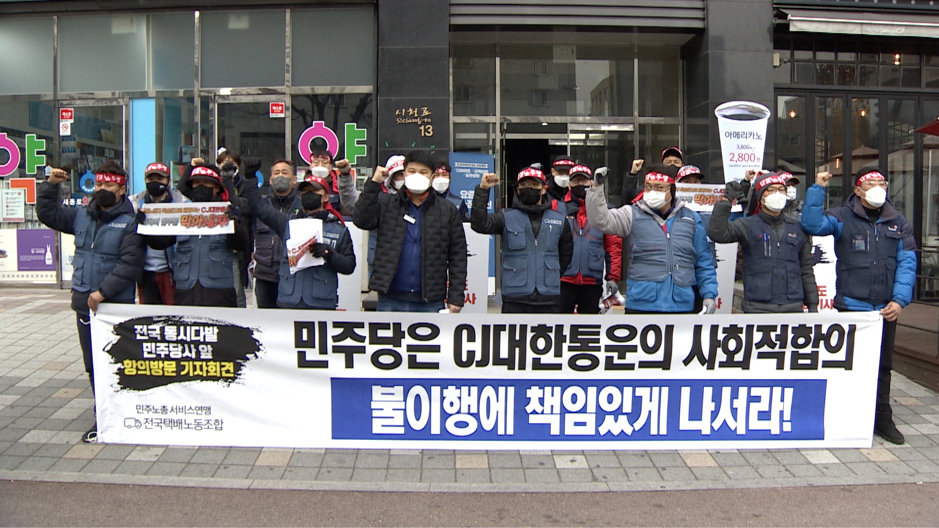 지난달 총파업 돌입으로 택배 배송 차질이 현실화 된 가운데 전국택배노조가 CJ대한통운의 사회적 합의 이행을 민주당이 책임있게 지도해야 한다고 촉구했습니다. 전국택배노조 광주전남지부는 민주당 광주시당에서 기자회견을 열고 CJ대한통운이 택배노동자 과로사 방지 등을 위한 사회적 합의를 이행하지 않고 있는 데 대...