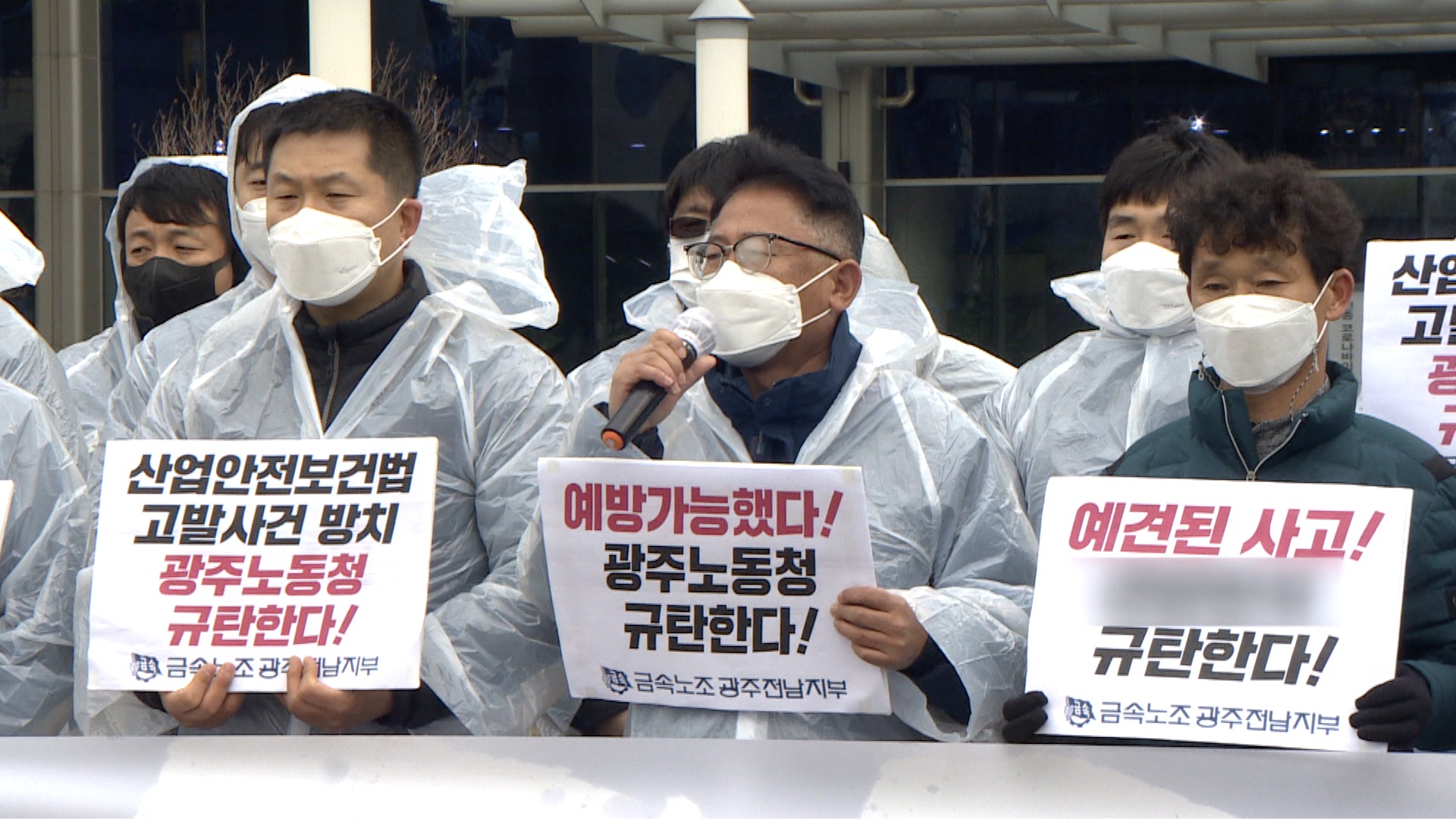 금속노조가 장성 한 종이상자 제조업체에서 발생한작업자 중상 사고와 관련해업체에 대한 특별감독과 안전보건진단 실시를 촉구했습니다.금속노조 광주전남지부는 광주고용노동청에서 기자회견을 열고'어제(30) 노동자 38살 황 모 씨가작업 중 기계설비에 끼여 중상을 입은장성 종이상자 제조공장은 안전사고가 끊이지 않는...