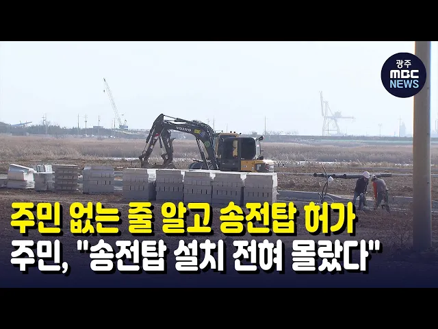 (앵커)송전탑은 전자파 피해때문에설치할 때마다 인근 주민들의 반대가 극심한 기피시설입니다..그런데 광양시가 사전 협의 없이 주민 이주 예정지에 송전탑 공사를 허가해 논란이 일고 있습니다.강서영 기자입니다.(기자)세풍산단 조성지 인근에 송전탑이 세워지고 있습니다.한국전력은 광양만 인근 산업단지에 전기를 공...