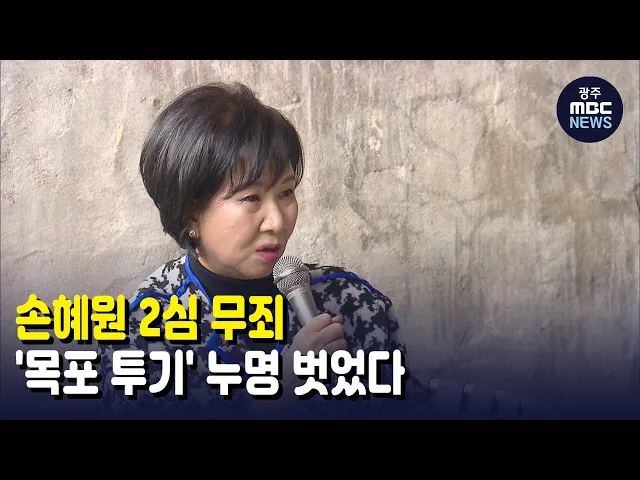 (앵커)목포 구도심 부동산 투기 의혹으로 재판을 받아온 손혜원 전 의원이항소심에서 무죄를 선고받았습니다. 재판부는 손 의원의 부동산 매입이시세 차익을 위한 것만으로는 볼 수 없다고 판단했습니다.김진선 기자입니다.(기자) 손혜원 전 국회의원이목포 부동산 매입과 관련해재판을 받아온 혐의는 두 가지입니다. 목포...