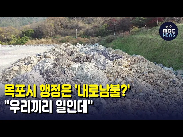 (앵커)목포시의 배짱 좋은 행정에'내로남불'이란 말이 나오고 있습니다.민간에는 엄격하면서 정작 자신들의 이해할 수 없는 행정에는 눈을 감고 있기 때문입니다.양현승 기자가 취재했습니다.(기자)목포시 옥암대학예정부지. 불과 한 달 전만에도, 장례용품과건설 폐기물 등이 뒤섞인 채 노출돼 있었지만지금은 푸른 덮개로...