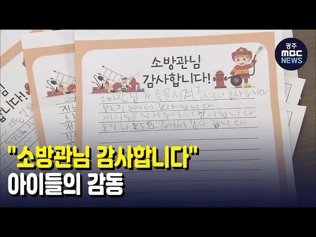 (앵커)초등학교 학생들이 고사리 손으로 쓴 편지가 소방대원들에게 전달됐습니다.열악한 근무여건 속에서도 안전을 지켜주는 소방대원들에게 감사의 뜻을 표한 건 겁니다.양정은 기자가 취재했습니다.(기자)소방서 사무실 책상이 편지로 가득합니다.나이도, 학교도 제각각.손때 묻은 편지에는감사 인사가 또박또박 적혀있습...