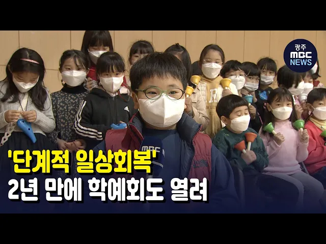 (앵커)학교에서 각종 행사와 교외 체험활동이2년 만에 다시 시작됐습니다.코로나19 상황이 비교적 안정세를 보이면서단계적 일상회복이 성큼 다가오고 있습니다.김안수 기자가 취재했습니다.(기자)초등학교 2학년 학생들이 강당에 모였습니다.선생님의 지휘에 맞춰오카리나와 핸드벨 합주를 연습합니다.일주일 앞으로 다가...