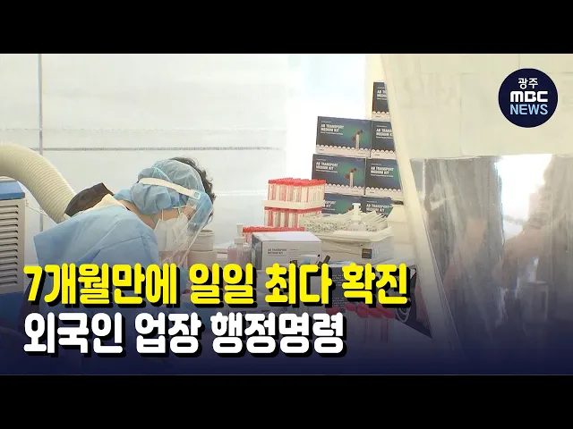 (앵커)어제 하루 광주에서 발생한 코로나19 확진자는 42명으로, 7개월 만에 가장 많았습니다.오늘도 오후 6시 기준, 26명이 추가되는 등확산세가 끊이지 않고 있는데요.특히 외국인 선제검사발 확진이 지속되자,광주시가 외국인 고용 사업장에 대해진단검사 행정명령을 내렸습니다.송정근 기자입니다.(기자)광주시의 코로나...