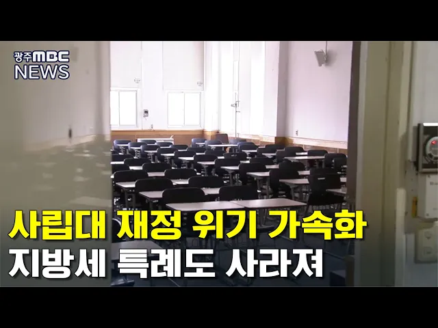 (앵커) 최근 지방 대학들은 '학생 수 감소' 여파를 온몸으로 느끼고 있죠. 내년부터는 지방세를 면제해주던 특례까지 사라지게 돼 재정 사정이 더더욱 어려워질 것 같습니다. 그야말로 엎친데 덮친 격입니다. 한신구 기자의 보도 (기자) ** (그래픽 1) 사립대학 학생 1인당 재정 광주,전남 대학들의 지난 2018년 학생 1인당...