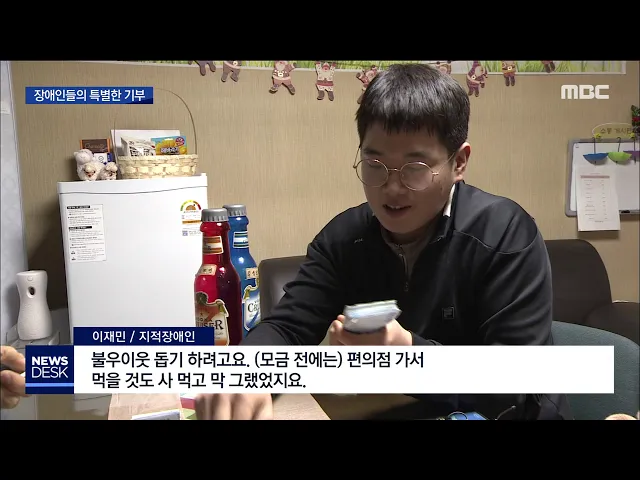 (앵커) 어렵게 번 돈의 일부를 더 어려운 이웃들을 위해 써달라며 내놓은 분들이 있습니다. 이 분들은 함께 사는 장애인들입니다. 처음엔 해외로 여행가자며 돈을 모으기 시작했다는데 무슨 사연이 있었던 걸까요? 우종훈 기자가 취재했습니다. ◀VCR▶ (기자) 김성남 씨는 지적장애 2급 장애인입니다. 최근 백혈병까지 앓...