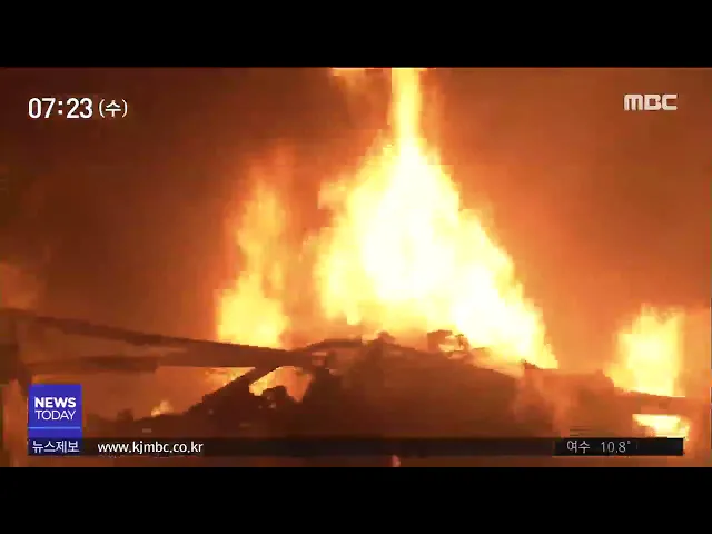 (앵커) 오늘(27) 새벽 나주의 한 농공단지에서 큰 불이 났습니다. 플라스틱 제조 공장에서 난 불이 단열재 공장으로까지 번졌습니다. 우종훈 기자가 취재했습니다. (기자) 시뻘건 불길이 하늘 높이 치솟습니다. 소방관들이 물을 뿌려보지만 좀처럼 불길이 잡히지 않습니다. 전남 나주시 동수농공단지에 있는 플라스틱 재활...