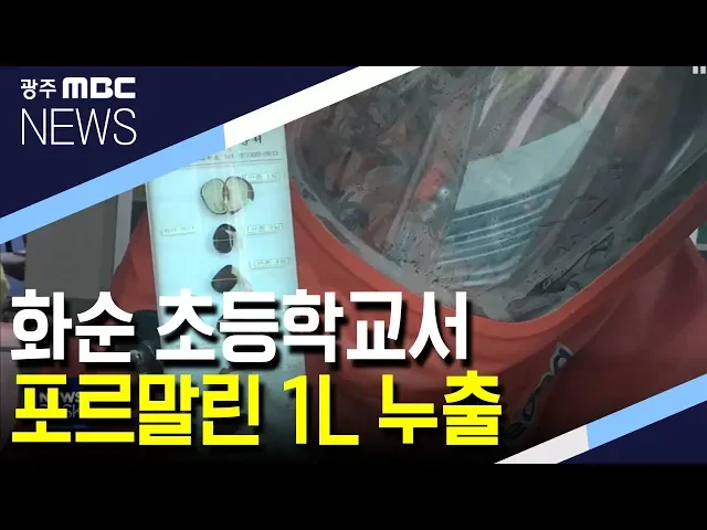 전국 학교에서 독성화학물질인 포르말린 유출이 잇따르는 가운데 화순 한 초등학교에서도 포르말린이 누출됐습니다. 어제(18) 오후 3시 20분쯤, 화순군 화순읍의 한 초등학교 과학실에서 실험용기에 담겨 있던 포르말린 1리터가 누출돼 소방과 환경당국이 방제작업을 벌였습니다. 이 사고로 인명피해는 없었으며, 소방과 경...