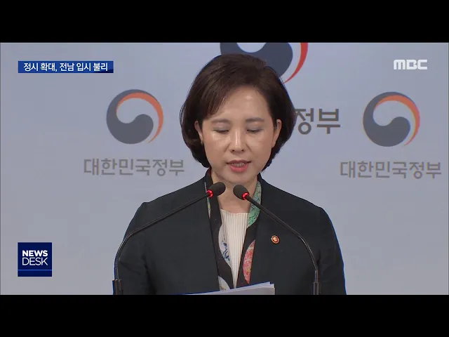 ◀ANC▶ 대학입시에서 정시모집을 확대한다는 정부 방침에 전남 교육계에는 비상이 걸렸습니다. 10명 중 9명 이상이 수시모집으로 대학에 들어가는 전남의 현실을 감안하면 고민이 클 수 밖에 없습니다. 김윤 기자가 보도합니다. ◀END▶ 전남의 대학입학 수능시험 성적은 강원도와 함께 전국 17개 시도 가운데 최하위권...