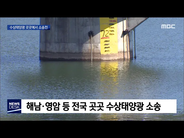 ◀ANC▶ 한국농어촌공사가 추진하는 수상 태양광 사업이 곳곳에서 마찰을 빚고 있습니다. 사업 허가를 둘러싼 갈등은 소송전으로 번지고 있습니다. 박영훈 기자가 취재했습니다. ◀END▶ 전남 해남의 한 농촌 마을. 농사용 저수지 한 복판에 태양광 시설이 추진되면서 주민들이 잔뜩 화가 나 있습니다. ◀INT▶김서주 *...