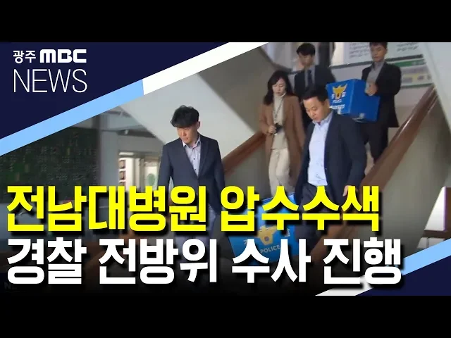 (앵커) 전남대병원의 채용비리 의혹을 둘러싼 경찰의 수사가 전방위로 확대되고 있습니다. 대규모 압수수색이 진행됐고, 수사 인력도 대폭 늘렸습니다. 남궁 욱 기자의 보도입니다. (기자) 전남대병원 채용비리 의혹을 수사중인 경찰이 대대적인 압수수색을 진행했습니다. 대상은 전남대병원과 화순전남대병원 등 병원 3곳...