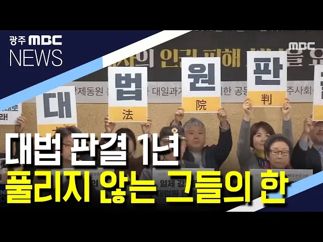 (앵커) 일제 강제동원 피해자들이 대법원에서 승소한 지 오늘로 꼭 1년이 지났지만 일본 정부와 전범 기업은 꿈쩍도 하지 않고 있습니다. 피해자와 시민단체들은 국제사회를 통해 압박 수위를 높이기로 했습니다. 송정근 기자입니다. (기자) 이춘식 할아버지와 양금덕 할머니는 지난해 일제 전범기업들을 상대로 한 손해배...