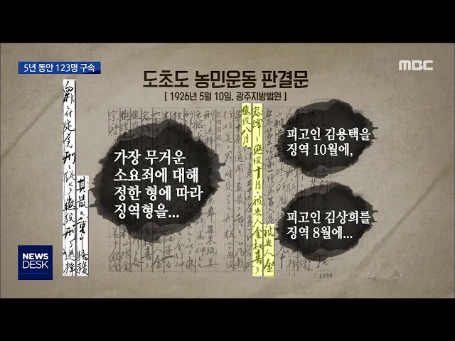 ◀ANC▶ 일제강점기에는 학생들 뿐만아니라 섬지역의 농민들까지 일제의 만행에 저항했습니다. 암태도 소작쟁의가 대표적인데 여기 말고도 신안지역 곳곳에서 농민들이 들고 일어났던 사실이 새롭게 확인됐습니다. 김양훈 기자가 취재했습니다. ◀END▶ 일제강점기인 1923년 암태도 소작인들은 친일 지주 문재철과 이를 ...