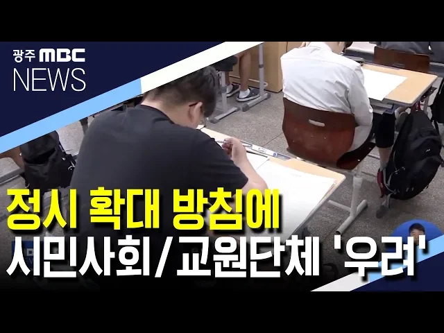 대학입시에서 정시모집을 확대하려는 정부의 움직임에 대해 시민단체와 교원단체가 반대 입장을 표명했습니다. 광주교사노조를 비롯한 교사노조연맹은 논평을 통해 정시 확대로는 공정성이라는 가치를 실현하기도 어려울 뿐 아니라 사교육 열풍과 문제풀이 교육을 불러올 것이라고 비판했습니다 학벌없는 사회를 위한 시민...
