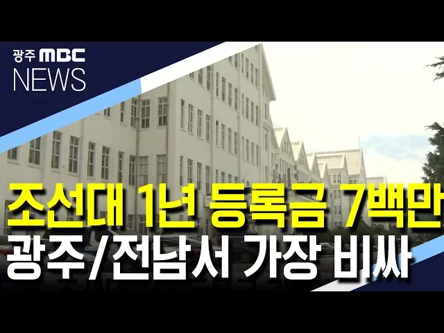 광주전남지역 4년제 대학 가운데 조선대의 등록금이 가장 비싼 것으로 나타났습니다. 교육부가 공개한 전국 4년제 대학 등록금 현황에 따르면 조선대의 연간 등록금은 7백만원으로 광주전남 스무개 4년제 대학 가운데 가장 많았습니다. 이어 동신대 663만원, 호남신학대 659만원, 광주대 653만원 등으로 사립대의 등록금이 ...