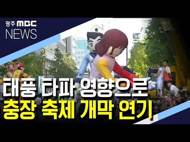 북상하는 태풍의 영향으로 광주 충장축제를 비롯해 예정됐던 가을축제들이 줄줄이 연기되거나 취소됐습니다. 광주 동구는 내일(2)로 예정된 충장축제의 개막식을 모레(3) 저녁 7시로 연기하고, 강강술래 등 야외 공연은 취소했습니다. 모레 저녁 트로트 가수 송가인 등이 출연하는 축하공연은 예정대로 진행됩니다. 광주문...