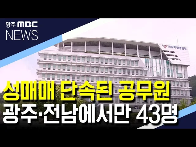 지난 5년동안 광주와 전남지역에서 성매매로 적발된 공무원이 43명에 달하는 것으로 나타났습니다. 경찰청 국정감사 자료에 따르면 지난 2015년부터 올해까지 광주에서는 21명, 전남에서는 22명의 공무원이 성매매로 적발됐습니다. 적발된 공무원 가운데 5명은 경찰관이었던 것으로 조사됐습니다.