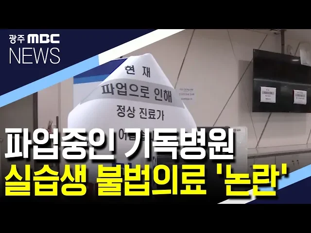 (앵커) 광주 기독병원 파업이 3주 넘게 이어지고 있습니다. 진료 공백이 불가피한데... 이 와중에 병원 측이 간호대 실습생들에게 환자를 맡겼다는 주장이 제기돼 논란입니다. 남궁 욱 기자가 취재했습니다. (리포트) 임금인상과 처우개선을 요구하며 보건의료노조가 20일 넘게 파업을 하고 있는 광주 기독병원. 파업이 한...