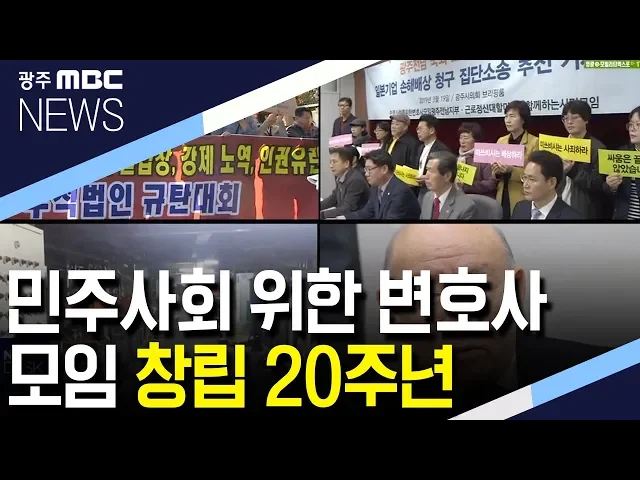 (앵커) 민주적 가치와 인권을 지키는 데 헌신해온 민주사회를 위한 변호사모임 광주전남지부가 창립 20주년을 맞았습니다. 5.18과 세월호, 근로정신대 등 각종 공익소송에 앞장서왔던 양심 변호사들의 활동을 김철원 기자가 되돌아봤습니다. (기자) 이명박 정권 초기인 지난 2009년 당시 한상률 국세청장이 故 노무현 전 대...