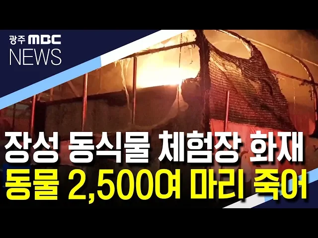 오늘(25) 새벽 1시 30분쯤 장성군 삼서면의 한 동식물 체험학습장에서 불이 나 소방서추산 2억 3천만원의 재산피해를 내고 1시간 반만에 꺼졌습니다. 이 불로 인명피해는 없었지만 체험학습장 3동이 불에 타 앵무새 등 조류 2500여 마리와 도마뱀 등 파충류 30여마리가 죽었습니다. 경찰과 소방당국은 사람이 없는 시간에 ...
