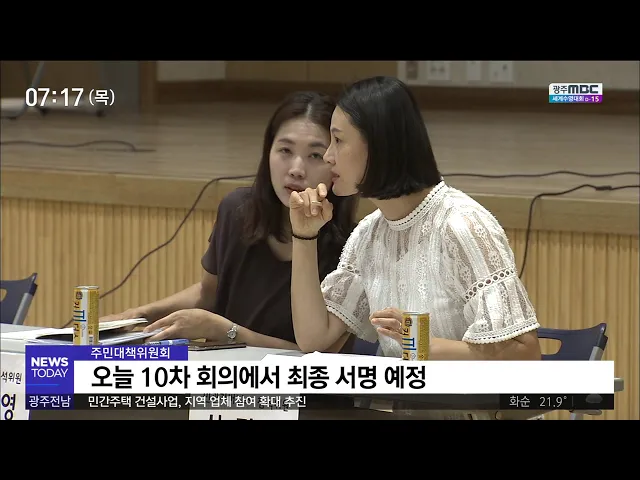 오늘의 주요뉴스... 나주 SRF 열병합 발전소 가동을 2년째 반대해온 혁신도시 주민들이 환경성 조사 제안을 받아들였습니다. ------------------------------------------- 광주 남구가 청사 개발사업과 관련한 감사원 감사 결과에 대해 재심의를 신청하기로 했습니다. ------------------------------------------- 민선 7...
