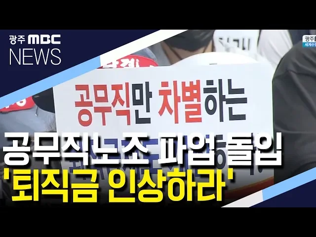 광주지역 5개 자치구의 공무직 노조원 580여명이 퇴직금 인상 등을 요구하며 오늘(24)부터 부분 파업에 돌입했습니다. 공무직 노조는 퇴직금이 다른 공무원들보다 적어 지난 2015년부터 퇴직금 누진제 등을 요구했지만 받아들여지지 않아 파업에 돌입한다고 밝혔습니다. 이에 대해 자치구들은 열악한 재정 상황 때문에 공무...