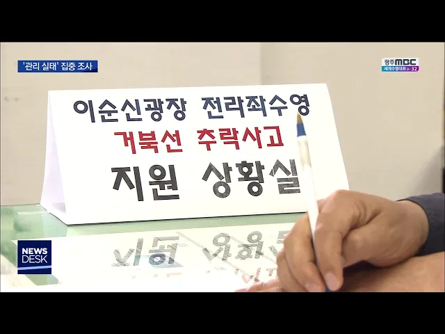 ◀ANC▶ 여수 이순신 광장에서 발생한 거북선 조형물 사고와 관련해 경찰이 본격적인 조사에 착수했습니다. 시공에 문제는 없었는지와 관리를 제대로 했는지 여부가 수사의 핵심이 될 것으로 보입니다. 조희원 기자입니다. ◀VCR▶ 여수 이순신 광장의 거북선 모형물로 오르는 나무 계단이 무너져 관광객 5명이 다치는 사...