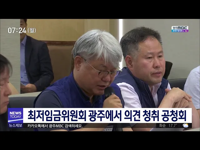 최저임금 심의과정의 투명성을 확보하기 위해 이해관계자 의견을 듣는 공청회가 광주에서 열립니다. 최저임금위원회는 오늘(10일) 광주고용복지플러스센터에서 '2020년 최저임금 심의 관련 공청회'를 열기로 했습니다. 이번 공청회에는 모두 14명의 위원이 참석해 근로자와 사용자, 그리고 근로감독관이 들려주는 현장의 목...