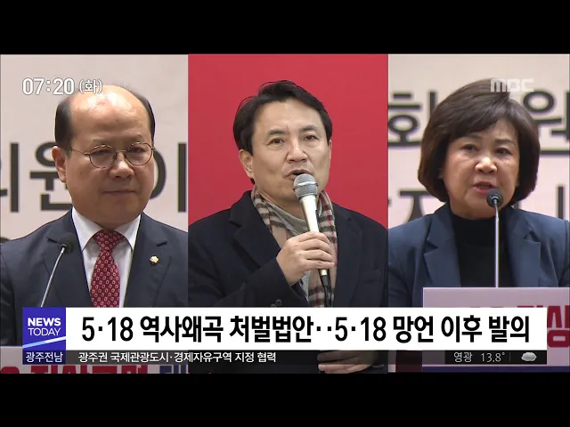 (앵커) 선거법 개혁안을 패스트트랙에 넣기로 한 여야 4당이 5.18 역사왜곡 처벌법도 다음달 18일 이전에 처리하기로 합의했습니다. 하지만 자유한국당이 국회 의사 일정을 거부하고 있어서 처리될 수 있을 지는 불투명합니다. 정용욱 기자입니다. (기자) ◀INT▶ 장병완/민주평화당 원내대표 "5.18 민주화운동 특별법개정...