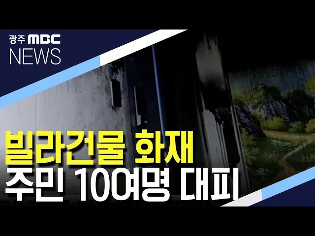 어젯(10)밤 10시 30분쯤 광주 서구 금호동의 한 빌라에서 불이 나 주민 10여명이 대피하는 소동이 있었습니다. 이 불로 인명피해는 없었지만 4층 가구 절반을 태우고 출동한 소방대에 의해 20여분만에 꺼졌습니다. 경찰과 소방당국은 정확한 화재원인을 조사하고 있습니다.