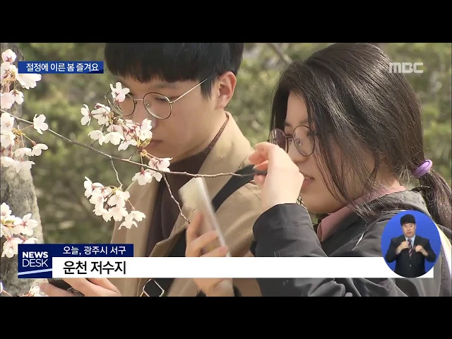 (앵커) 청명*한식의 맑은 날씨와 주말이 겹치면서 지역 명소는 나들이객으로 붐볐습니다. 시민들은 가족, 연인과 꽃놀이를 즐기고 광주의 몰랐던 역사를 새로 배우기도 하며 봄을 즐겼습니다. 우종훈 기자입니다. (기자) 벚꽃 나무가 만개하면서 저수지 주변이 연분홍 빛으로 물들었습니다. 꽃놀이에 나선 시민들은 저마다 ...