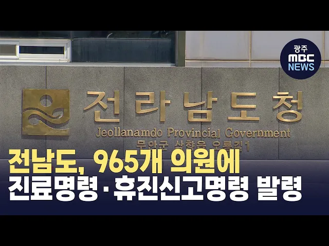 전라남도는 지난 10일 의료계 집단 휴진 결의와 중대본 결정에 따라 전남 22개 시군, 965개 의원에 진료명령과 휴진신고명령을 발령했습니다.전라남도는 이를 위해 시군 직원을 대상으로 의원별 책임관을 2인 1조로 지정해 각 의료기관에 직접 명령서를 교부하고 있습니다.한편 전라남도는 개원의 집단휴진에 따른 도민 피...
