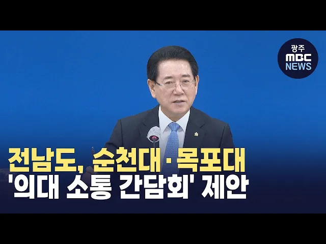 전라남도가 국립의대 설립 방안을 논의하기 위해순천대와 목포대 구성원이 참여하는 대학별 소통 간담회 개최를 제안했습니다.이번 간담회는 전남지사와 대학 관계자가터놓고 의견을 나누기 위한 자리로, 날짜와 장소, 참가자 범위 등은 대학 측이 정하도록 했습니다. 전라남도는 간담회를 통해공모에 대한 궁금증을 해소하...