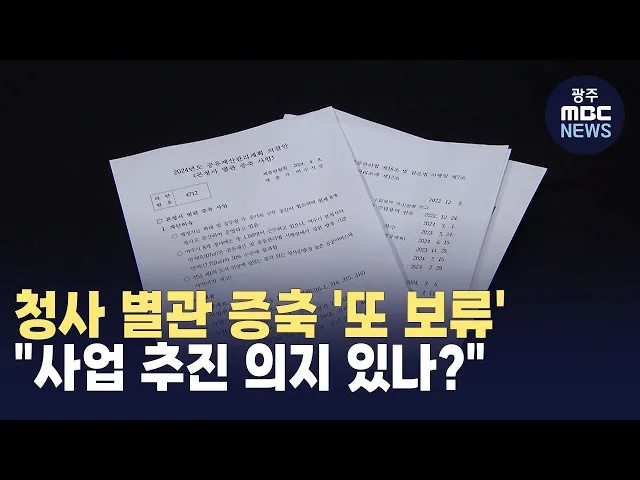 (앵커) 여수시가 추진하고 있는 본청사 별관 증축 사업이지난 4월에 이어 또다시 시의회에서 보류됐습니다.시의원들은 여수시의 대응과 준비가 무성의하다며사업 추진 의지가 있는지 따져 물었습니다. 문형철 기자입니다. (기자)지난 4월 여수시의회 임시회에 상정된 본청사 별관 증축 안건입니다. 당시 상임위원회는 여수...