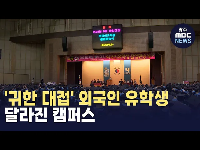 (앵커) 외국인 유학생 20만 시대,이제는 대학교들도 외국인 유학생에 맞춰미리 졸업식을 여는 등 캠퍼스 분위기도 달라졌는데요.광주여자대학교는 학칙을 개정해남자 외국인 유학생 모집에 나서는 등지역 대학들이 생존을 위해 안간힘을 쓰고 있습니다.보도에 김영창 기자입니다.(기자)학사모를 쓴 외국인 유학생 얼굴엔 웃...
