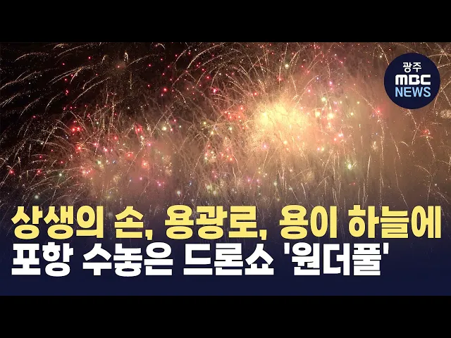 (앵커) 서울, 부산과 함께 국내 3대 불꽃축제로 자리 잡은 포항국제불빛축제가 지난 주말 영일대해수욕장에서 열렸는데요, 이번 축제에는 불꽃 드론 1천 대가 일사불란하게 움직이며 밤 하늘에 정교한 불꽃 그림을 그려 관객들의 탄성을 자아냈습니다.포항문화방송 이규설 기자가 보도합니다.(기자) 총천연색 불꽃들이 밤하...