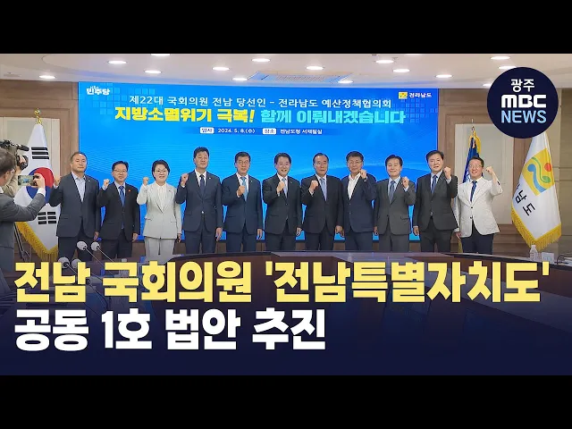 전남지역 국회의원들이'전남특별자치도 설립 특별법'을공동 1호 법안으로 준비하고 있습니다.'전남특별자치도 설립 특별법'은더불어민주당 문금주 의원이 대표발의하고전남지역 9명 국회의원들이 참여하는 공동법안으로 발의될 예정이며 문금주 의원실은이번주부터 지역 국회의원들의 서명을 받고 있습니다.한편 전라남도와...