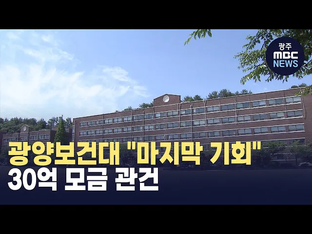 (앵커) 폐교 위기에 놓인 광양보건대학교가내년에 정부 지원을 받을 길이 열렸습니다.올해 30억 원의 기금을 마련한다는 조건인데요.학교를 살릴 수 있는 마지막 기회인 만큼지역사회의 관심과 지원을 호소하고 있습니다.김단비 기자입니다.(기자) 400억 대 설립자 횡령으로 정부 재정지원 제한 대학에 이름을 올린 광양보...