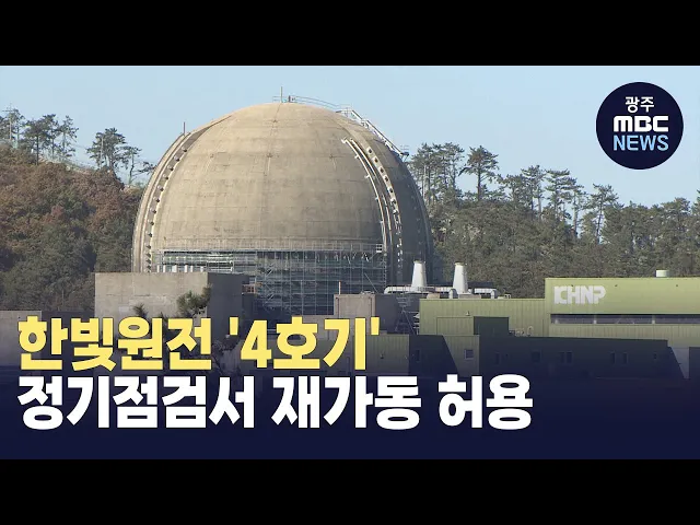 원자력안전위원회가 지난 4월부터 정기 검사를 진행한영광 한빛원전 4호기의 재가동을 허용했습니다.원안위는 이번 정기 검사 항목 92개 중 핵분열 반응이 일정하게 발생하기 전까지 수행해야 할 82개 항목을 검사한 결과 핵분열 반응이 안전하게 이뤄질 수 있음을 확인했다고 설명했습니다.한편, 지난달 정기검사 중 안전...
