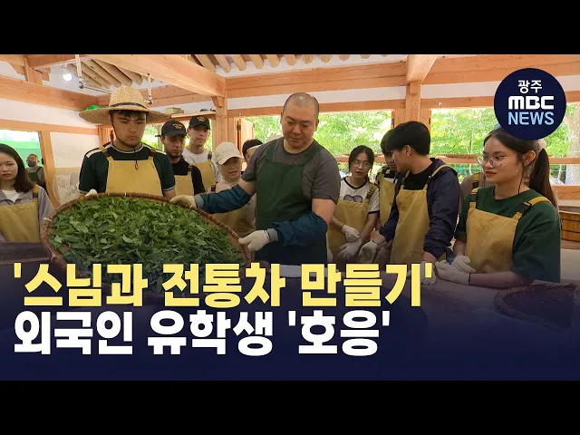 (앵커) 세계문화유산인 해남 대흥사는 해마다 전통차를 만드는 체험 행사를 열고 있는데요. 올해는 외국인을 대상으로 한국 정서와 종교 문화를 알리는 데 기여해 큰 호응을 얻고 있습니다.김규희 기자가 다녀왔습니다. (기자) 밀짚모자를 쓰고 바구니를 든 청년들이 해남 두륜산 자락 녹차밭에 이른 아침부터 삼삼오오 ...