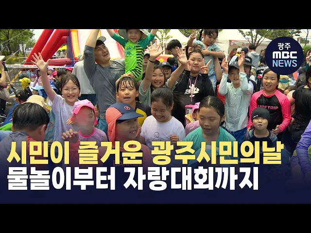 (앵커) 오늘 하루도 때이른 무더위 탓에 너무 더웠습니다. 평소 차들로 꽉 막혔던 광주시청 앞 도로가 오늘은 깜짝 물놀이장으로 변신했는데요. 많은 시민들이 모여 시청사에 모여 광주시민의날을 만끽했습니다.주현정기자가 다녀왔습니다. (기자) 평일, 주말 할 것 없이 차들로 꽉 막히던 광주시청 앞 왕복 6차선 도로가...