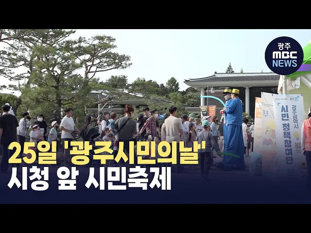 광주시가 59번째 광주시민의 날을 맞아내일(25) 시청사에서 시민 축제를 개최합니다. 지역 96개 동을 대표하는 재주꾼들의 경연과 전라도말 자랑대회, 철권대회 등 다양한 참여 행사가 마련되며, 시청사 1층과 앞마당 개방은 물론 시청 앞 도로 150m를 차량 통제해 어린이 놀이시설인 워터슬라이드도 설치할 예정입니다. 광...