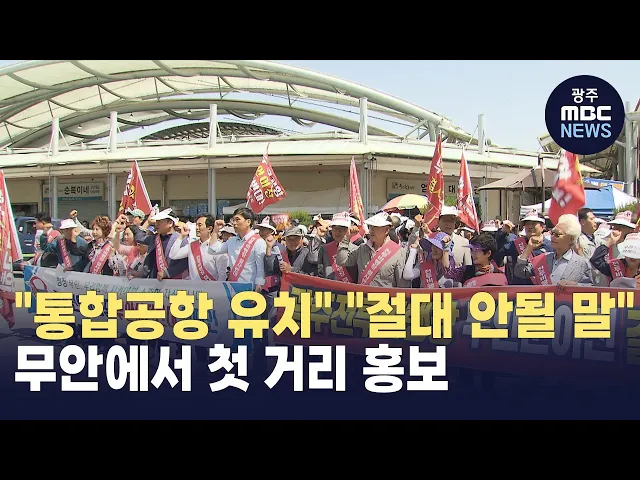 (앵커) 광주시가 공항 이전을 홍보하기 위해 무안을 처음으로 찾아 대민 설득에 나섰습니다. 하지만 반대가 심해서 예정된 시간을 다 채우지 못하고홍보 활동을 마쳤습니다. 주현정 기자가 현장에 다녀왔습니다.(기자)광주시와 전라남도 공직자들이무안의 한 전통시장을 찾았습니다. 광주 민간·군, 통합공항의 이전 효과 ...