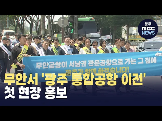 광주시와 전라남도, 광주통합공항 무안 이전 추진위가 오늘(24) 무안에서 처음으로 현장 홍보활동을 펼쳤습니다. 홍보 활동 참가자들은 무안읍 5일장에서 통합공항 이전 효과 등을 설명하는 유인물과 앞서 강기정 광주시장이 무안지역 4만 2천여 전체 가구에 발송한 편지 등을 다시 배부하며, 무안국제공항을 서남권 관문...