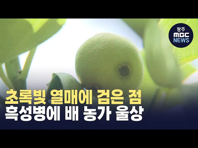(앵커) 과실이 검게 변하는 과수병인 흑성병이 지역 농가에 번지고 있습니다.올해 특히 비가 많이 와, 피해가 클 것으로 보이는데요. 애써 농사를 지은 농가들은 애를 태우고 있습니다. 김초롱 기자의 보도입니다.(기자)나주에 있는 배 농가입니다. 나무에는 동전 크기 만한, 초록빛 열매들이 달려 있습니다.50일 정도 자...