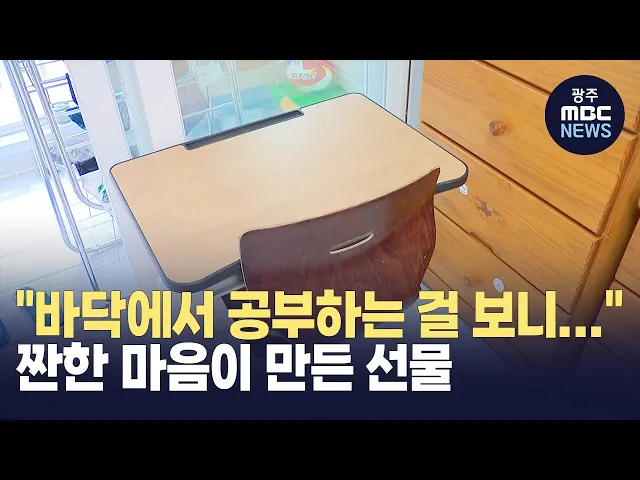 (앵커) 이혼이나 경제적 어려움을 이유로 할머니, 할아버지에게 맡겨진 아이들이 있습니다.가정형편이 어렵다보니 이렇다할 책상도 없어 방바닥에 엎드려 공부를 하고 있다는 소식을 들은 어른들이 특별한 선물을 준비했다고 합니다.서일영 기자가 취재했습니다. (기자) 책상과 의자가 가득 실린 트럭이 파출소 주차장에...