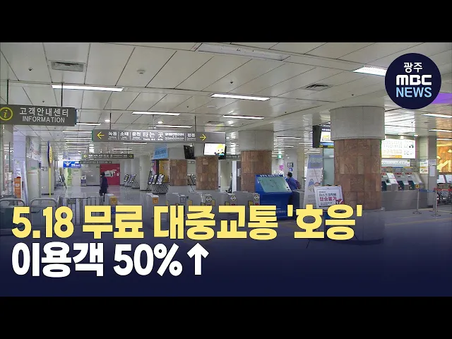 광주시가 5·18정신 계승을 위해 지난 18일 대중교통을 무료로 운영한 가운데 도시철도 이용객이 50% 증가하는 등 좋은 반응을 얻은 것으로 나타났습니다.광주교통공사에 따르면 토요일이었던 지난 18일 1호선 이용객은 6만542명으로,올해 같은 요일 평균치보다 46.1% 많았습니다.한편 강 시장은 이번 대중교통 무료 사업...