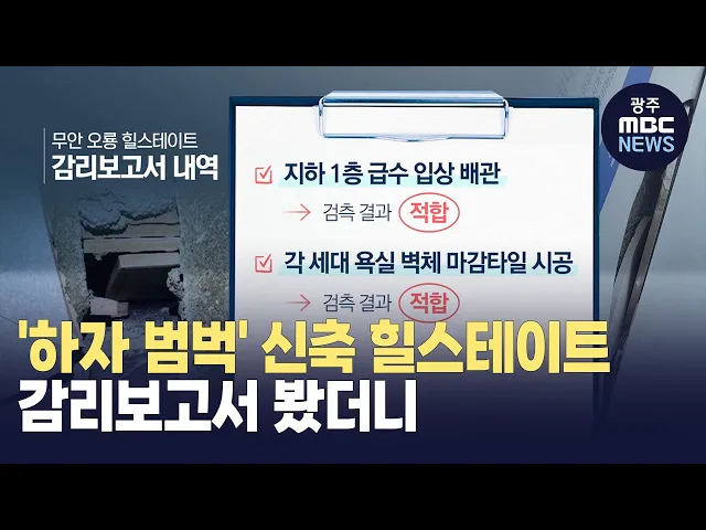(앵커) 건설법에서는 아파트 공사를 할 때 공정 전반을 관리하는 '공사감리'를 두도록 하고 있습니다.최근 무더기 하자로 논란이 된무안군 오룡힐스테이트 아파트 역시 감리가 있었는데요.감리보고서를 입수해 살펴봤더니 실제 현장과는 큰 차이가 났습니다.안준호 기자입니다.(기자) MBC취재진이 입수한 무안군 오룡 힐스...