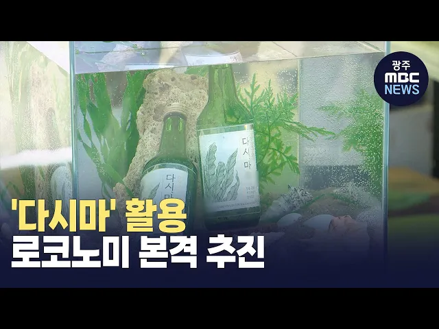 (앵커) 완도의 특산물인 '다시마'를 활용한 세계 최초의 소주가 개발됐습니다.다시마 등 해조류를 활용한 '로코노미'가 본격 추진되면서 완도의 해양치유 산업 활성화에 도움이 될 전망입니다.신광하 기자가 보도합니다.(기자) 장성의 한 주류업체에서 소주 신상품 생산이 한창입니다.알코올 도수 15.8%의 '다시마 소주'로...