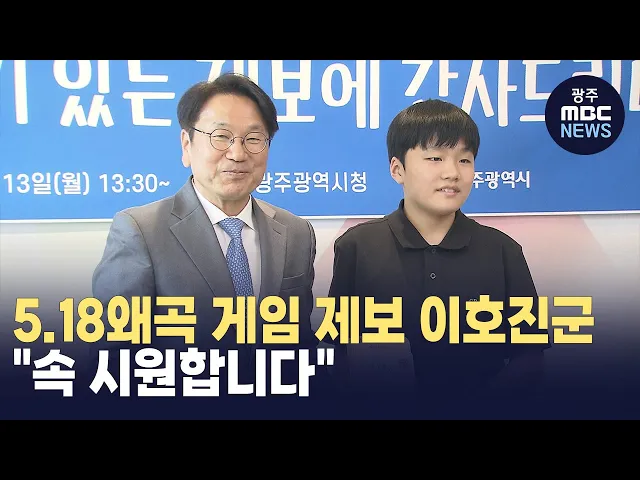5·18민주화운동 왜곡 설정 논란으로 삭제된 온라인 게임을 처음 제보한 초등학생이 광주를 찾아 "속 시원하다"고 말했습니다.5·18왜곡 근절 공로를 인정받아 시장 표창을 받기 위해 광주에 초청된 이호진군은 "학교에서 배운 5.18 역사를 왜곡한 게임을 발견해 제보했을 뿐"이라며 자신의 신고가 게임 삭제와 게임사의 공식...
